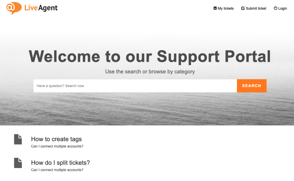 Клиентский портал встроен в программный комплекс LiveAgent. Пользоваться им довольно просто. Если вы впервые используете LiveAgent, просто создайте бесплатную учетную запись или воспользуйтесь бесплатным ознакомительным периодом. После создания учетной записи, следуйте инструкциям, приведенным в руководстве по началу работы. Так вы сможете быстрее ознакомиться с нашим программным обеспечением.