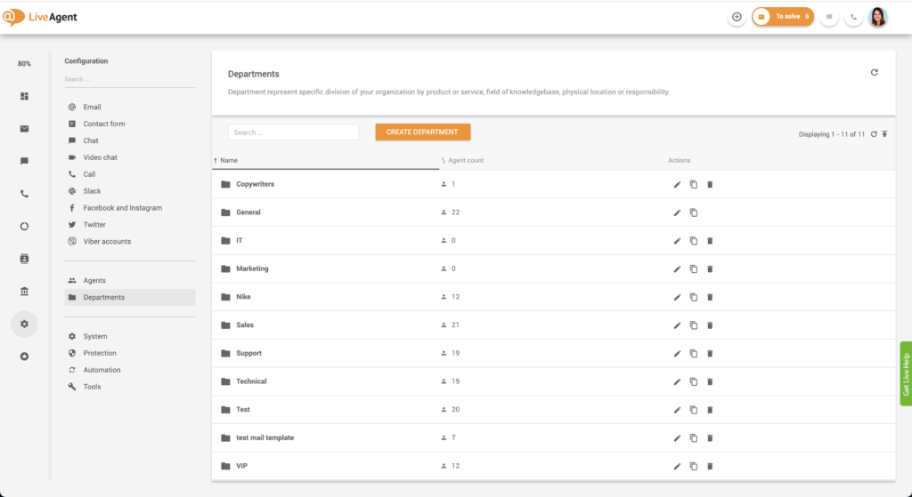 Как правило, отделы создаются для более эффективной организации системы Help Desk. Кроме того, отделы отлично помогают настраивать индивидуальные рабочие процессы для различных групп специалистов по работе с клиентами.