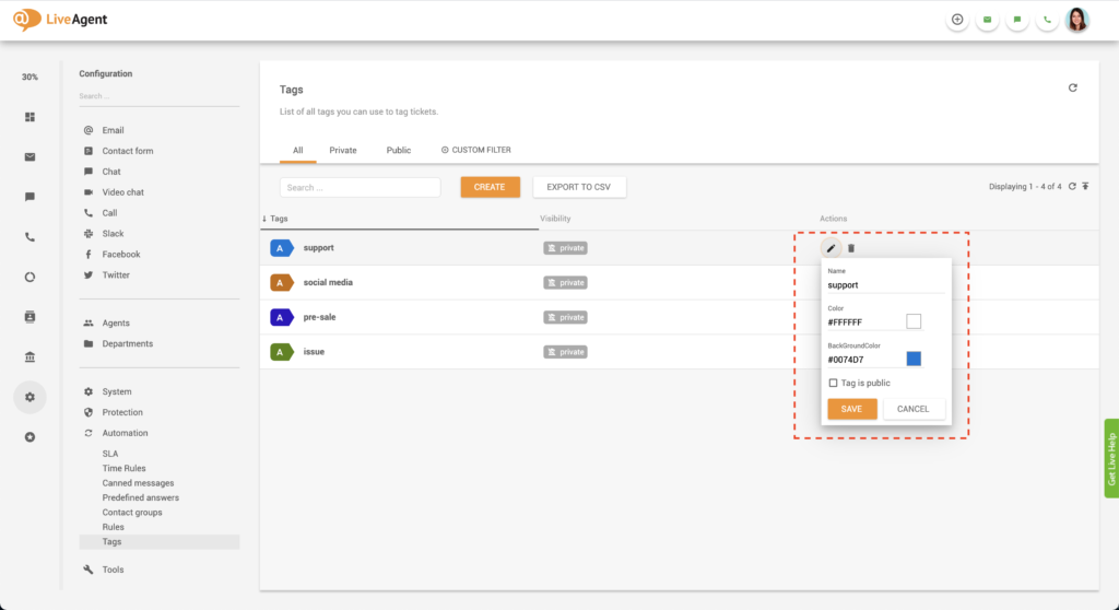 Let LiveAgent add tags to each ticket based on pre-defined rules and enjoy viewing each ticket’s contents at a glance. Try it today.