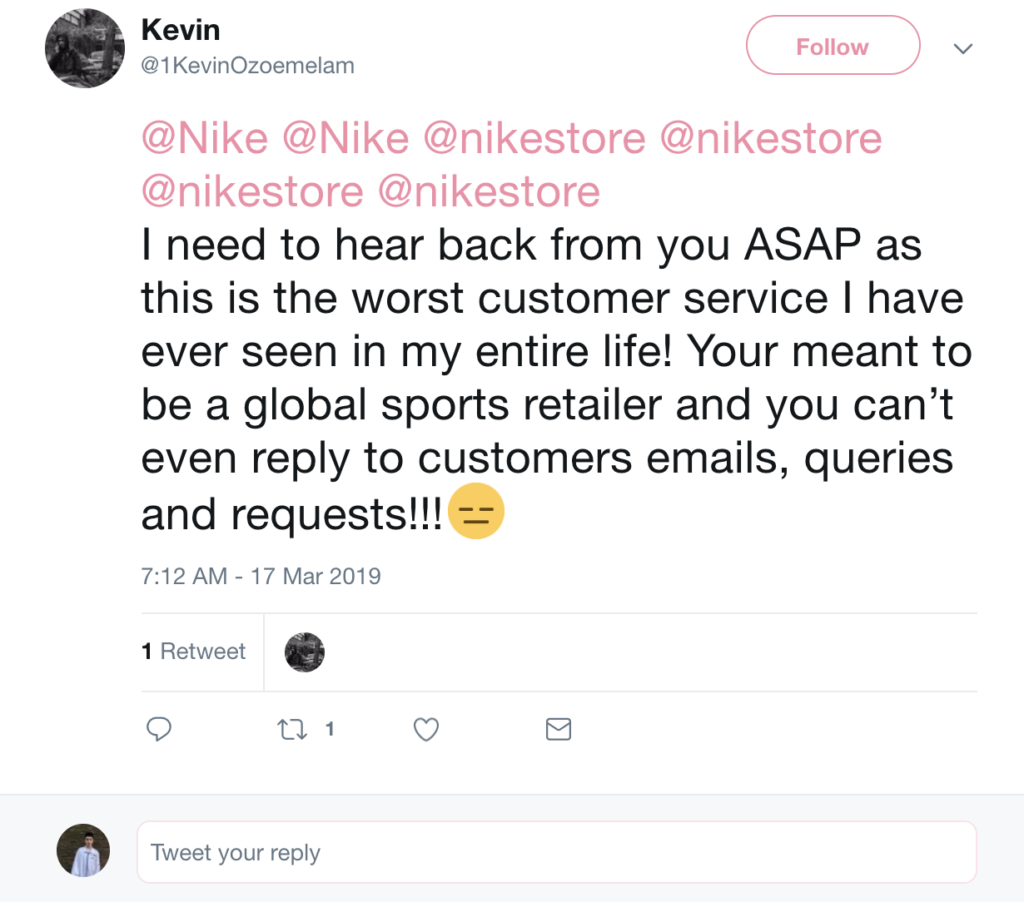 Поддержка в Twitter важна, поскольку эта платформа считается одним из ‘постоянно действующих’ каналов. Клиенты ожидают получать здесь быстрые ответы на свои запросы, не позднее часа с момента отправки. И если в эти сроки они ответа не дождутся, то они, вполне вероятно, поделятся своим недовольством вашей компанией с другими пользователями в сети.