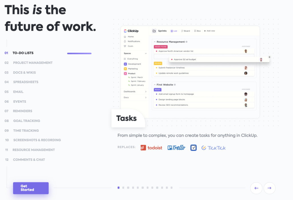 ClickUp — это облачное решение для совместной работы и управления проектами, которое подойдет компаниям любых размеров и любых сфер деятельности. В этой системе представлен ряд эффективных функций, созданных для облегчения управления задачами, таких функций, как предупреждения, назначение задач и статусы.