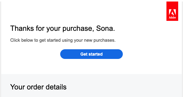 Этот тип письма с благодарностью отправляется после того, как кто-то совершил у вас покупку и стал вашим клиентом. Такие сообщения выполняют задачу формирования клиентской лояльности и, кроме того, могут рекомендовать клиенту другие связанные товары, которые его могли бы заинтересовать.